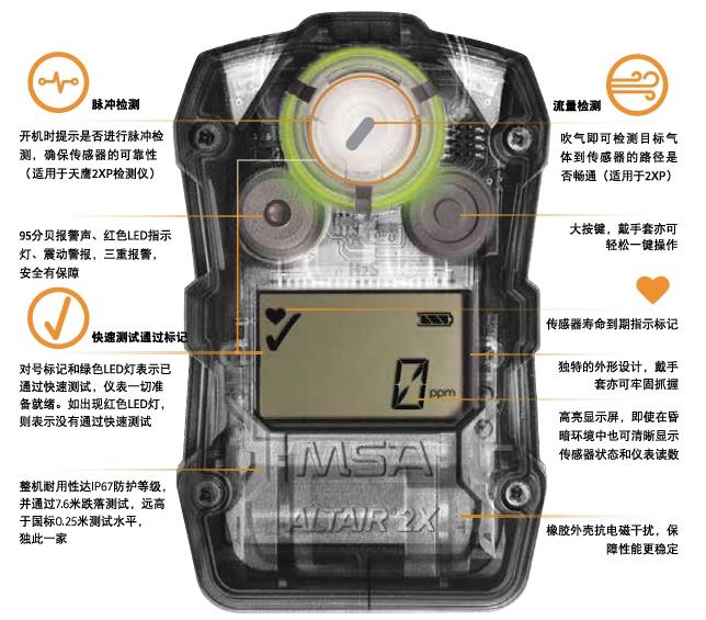 美國MSA梅思安 天鷹2X 便攜式氣體檢測儀 ALTAIR 2X Gas Detector 產品特點: