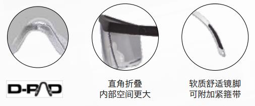 中國款防護(hù)眼鏡,寬闊前額,D-PAD獨特創(chuàng)新完美貼合亞洲人臉型。鼻架,高效側(cè)邊防護(hù),經(jīng)濟(jì)耐用。軟質(zhì)鏡腳保證長時間佩戴舒適。