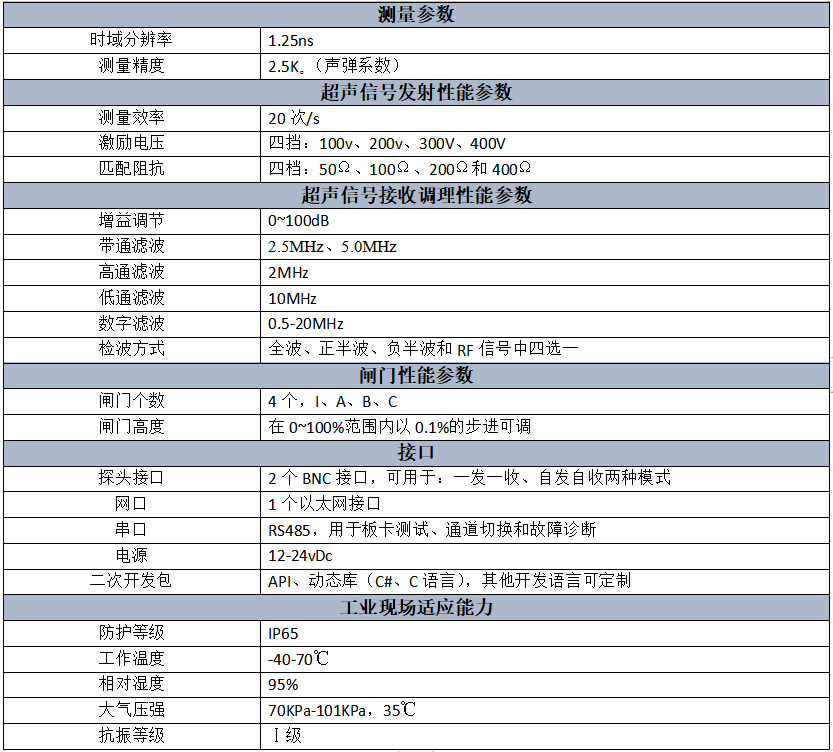 超聲應(yīng)力測量模塊 相關(guān)參數(shù):