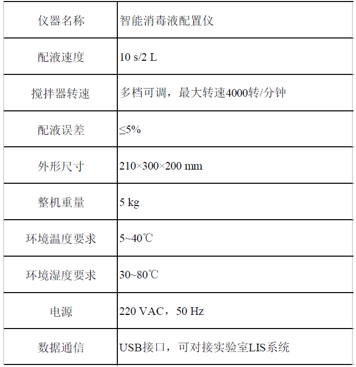 中瑞互信 智能消毒液配置儀 相關參數: