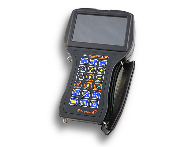由于渦流探傷儀的體積小,操作員只能用一只手進行設置。 該設備配有一條側帶,可以用左手或右手牢牢固定探傷儀,而其狹窄度則有助于輕松觸及鍵盤上的任何按鈕。 由于重量輕,操作員可以長時間進行渦流測試而不會感到疲勞。