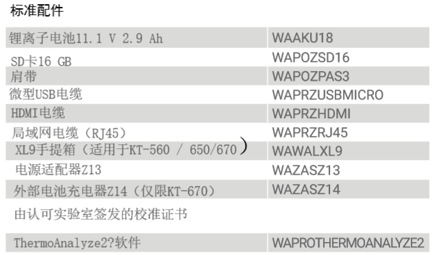 波蘭SONEL(索耐) KT-670 / KT-650 / KT-560熱像儀 標(biāo)準(zhǔn)配件: