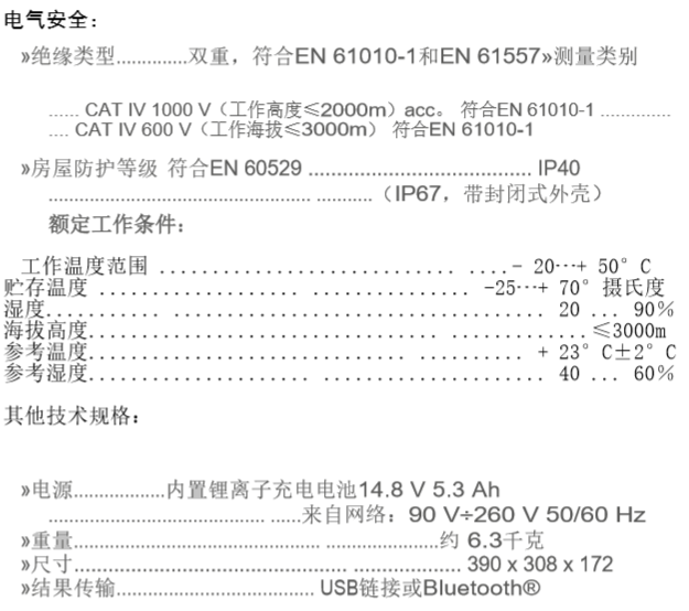 波蘭SONEL(索耐) MIC-15k1絕緣質量分析儀 相關參數: