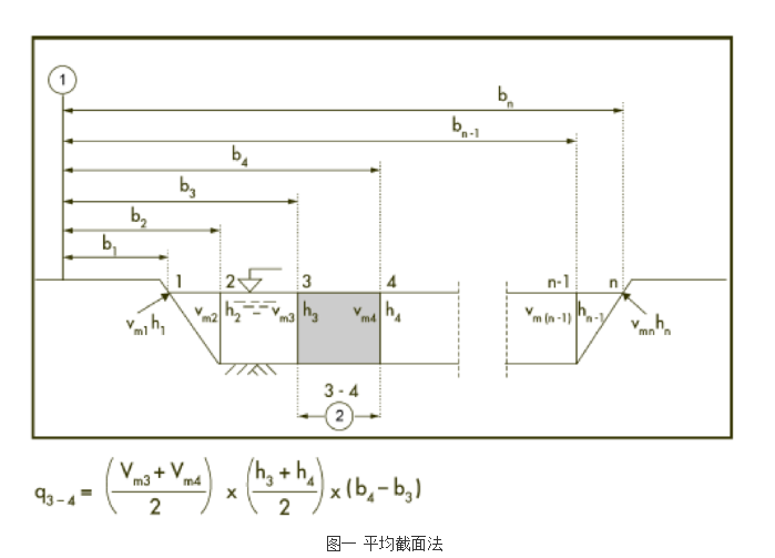 其中,河流流量測量支持:平均截面法(圖一)和中間截面法。