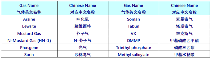 部分大規模殺傷性武器Weapons of Mass Destruction (WMD) 神經毒性氣體表如下: