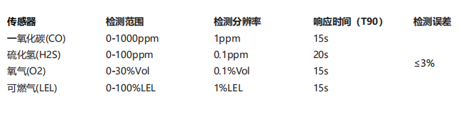 報警信號 高/低報警、TWA/STEL 報警、電池欠壓報警、傳感器故障報警、泵堵塞報警(MP400P)、超量程報警