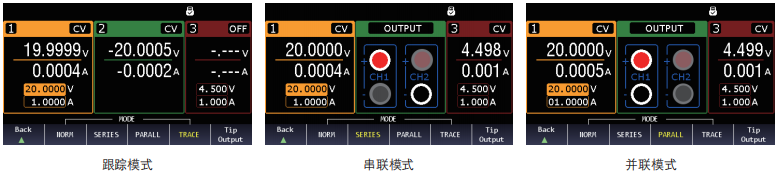 – 一鍵串聯并聯,跟蹤模式設置,可輸出正負電壓