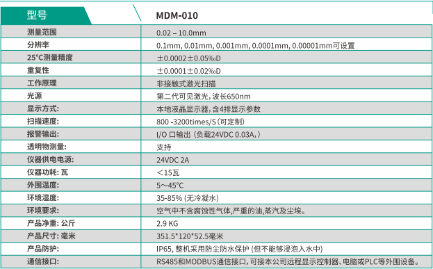 德國(guó)MIKROMETRY 激光測(cè)徑儀MDL-010 產(chǎn)品特點(diǎn):