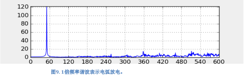 對(duì)于頻譜分析平臺(tái)中的電弧診斷,我們希望在FFT(快速傅立葉變換)圖中識(shí)別電頻率的基頻,在這種情況下為60Hz。 我們不應(yīng)該看到其他兩種效應(yīng)中出現(xiàn)的任何諧波。