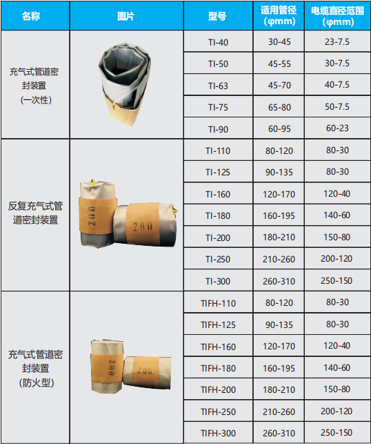 產(chǎn)品備注:充氣式電纜管道密封裝置
