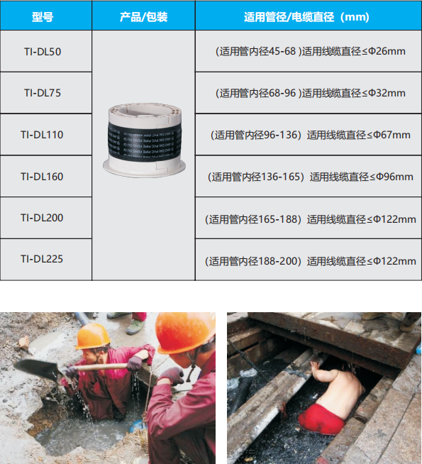 7 、產(chǎn)品適用于不同管徑規(guī)格的空管及有線的管道
