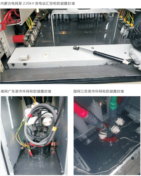 在電網(wǎng)設(shè)備中,環(huán)網(wǎng)柜、開關(guān)柜、端子箱等室內(nèi)外電氣柜受潮、形成凝露等危害十分嚴(yán)重,過去采用的除濕器、加熱器等有源方法存在各種各樣的問題,治標(biāo)不治本。原始的封堵方法也存在很多問題。“無源化”的電力設(shè)備防潮防凝露治理方案成為一種新型解決方案,在實際應(yīng)用中效果明顯,填補了國際和國內(nèi)在此領(lǐng)域的技術(shù)空白。在電氣柜底板及電纜夾層(隧道)進行氣密封堵,將電纜周圍的孔洞、縫隙進行密封處理,氣體無法穿越結(jié)構(gòu)件的密封,可以有效阻止潮氣、煙氣、毒氣與液態(tài)水通過,從根本上阻斷了潮氣和凝露產(chǎn)生的源頭。