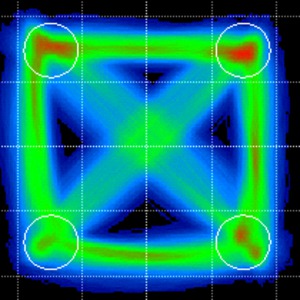 | 遮罩標(biāo)簽 | 右圖所示的單獨(dú)的“遮罩”選項(xiàng)卡提供了按星座組劃分的遮罩違例數(shù)。編號(hào)被布置為對(duì)應(yīng)于符號(hào)布置。掩碼閾值在“引擎”窗口中設(shè)置,可用于通過/失敗發(fā)射機(jī)測試 |
