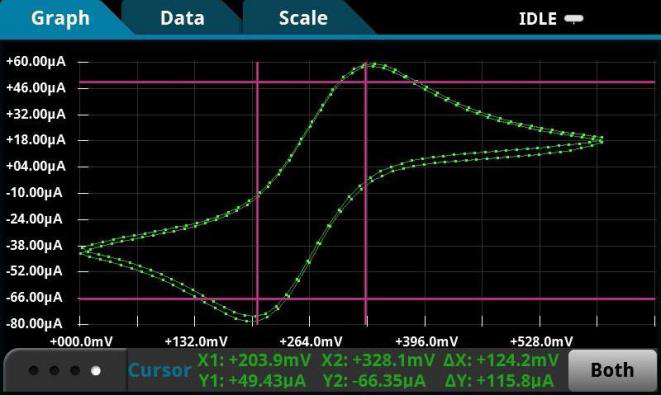 完整的圖形繪圖窗口可轉換原始數(shù)據(jù)并立即將其顯示為有用信息,例如循環(huán)伏安圖。觸摸屏界面使觀察, 交互和瀏覽變得容易