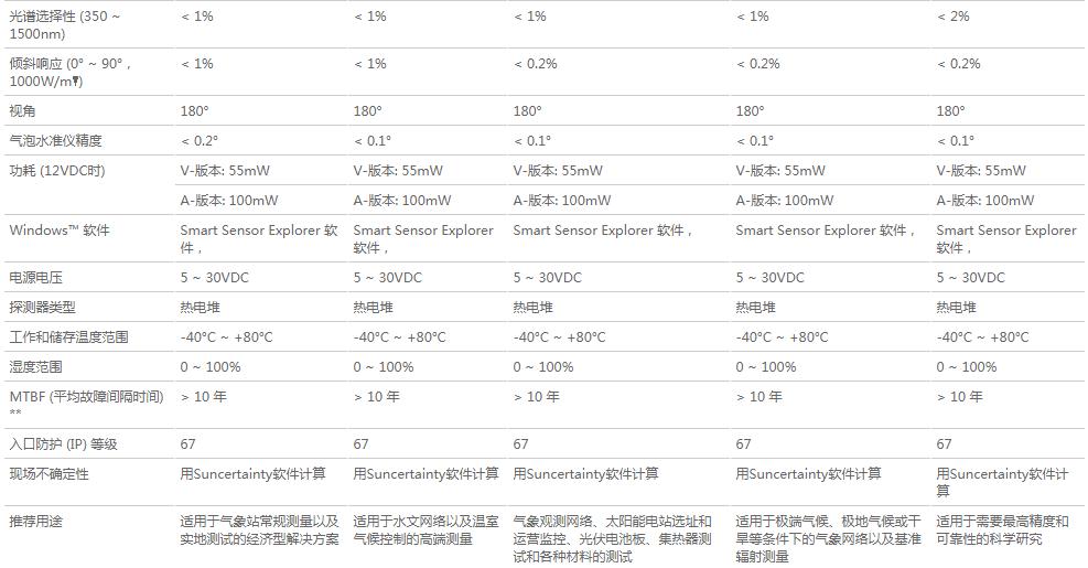 | 模擬輸出范圍* | 0?~?1600W/m | 0?~?1600W/m | 0?~?1600W/m | 0?~?1600W/m | 0?~?1600W/m |