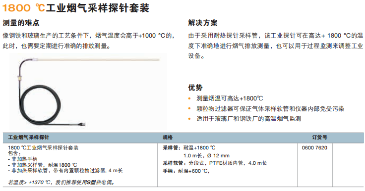 針對(duì)燃燒設(shè)備的多種用途:用于產(chǎn)生熱能、發(fā)電、水蒸汽、熱水,或者用于某些材料的生產(chǎn)以及表面處理,用于焚燒廢棄物和廢料。這意味著需要采用不同的氣體采樣探針來(lái)進(jìn)行不同應(yīng)用中的測(cè)量,以及使用不同燃料的工況和產(chǎn)生不同污染物的工況測(cè)量。