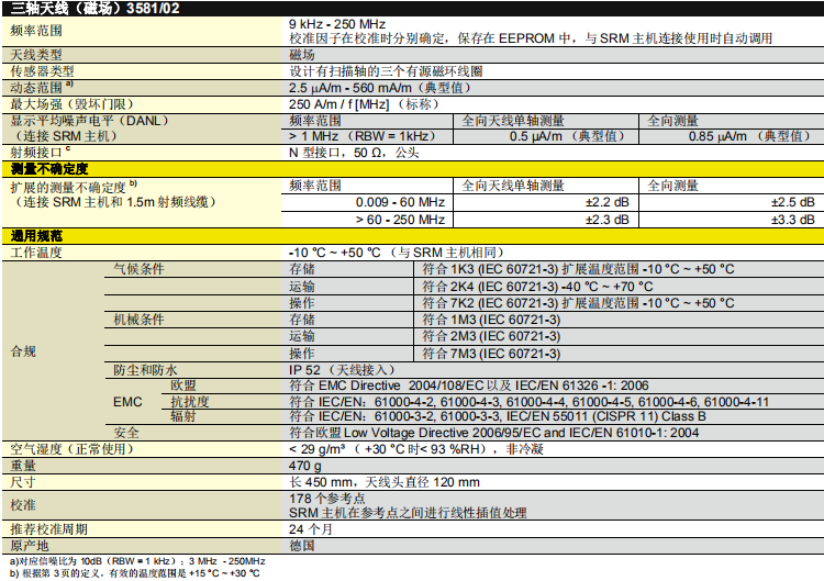 德國Narda SRM-3006 電磁輻射選頻分析儀 相關(guān)參數(shù):