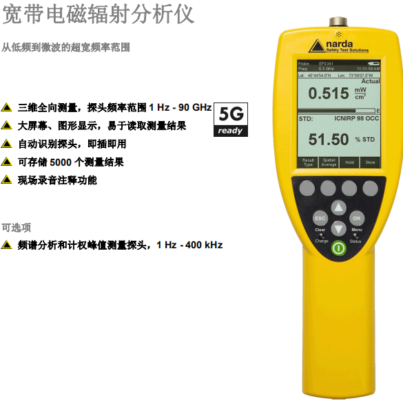 德國Narda NBM-550 寬帶電磁輻射分析儀 產品特點:
