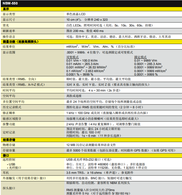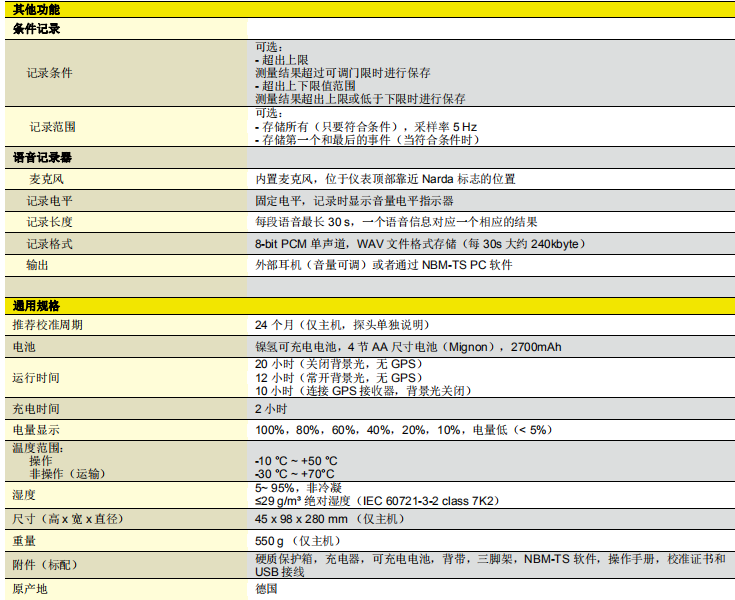 德國Narda NBM-550 寬帶電磁輻射分析儀 相關參數: