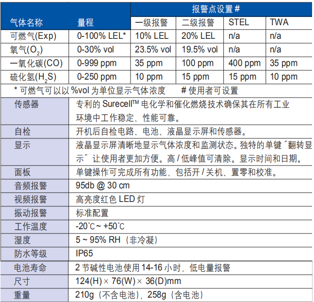 霍尼韋爾 minimax x4四合一氣體檢測儀 相關(guān)參數(shù):