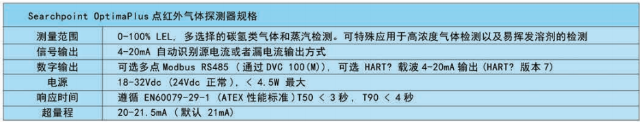 霍尼韋爾 Sieger Searchpoint Optima Plus固定式點(diǎn)紅外氣體探測器 相關(guān)參數(shù):