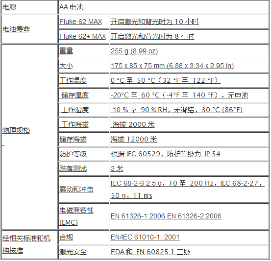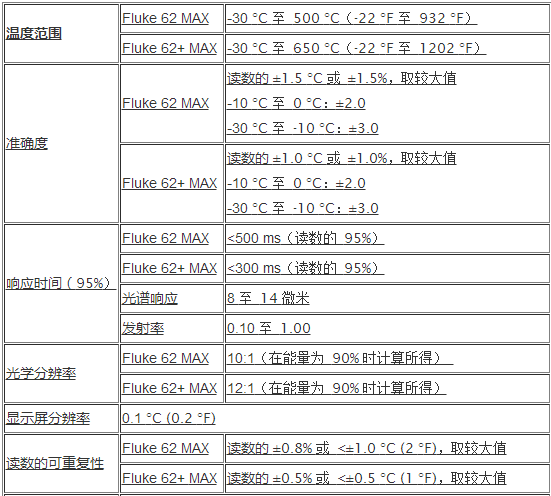 美國Fluke 62 Max/MAX+可調(diào)發(fā)射率/旋轉(zhuǎn)雙激光紅外測溫儀 相關參數(shù):