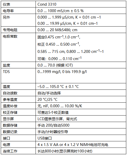 德國WTW Cond3310型便攜電導率儀set1產品技術參數: