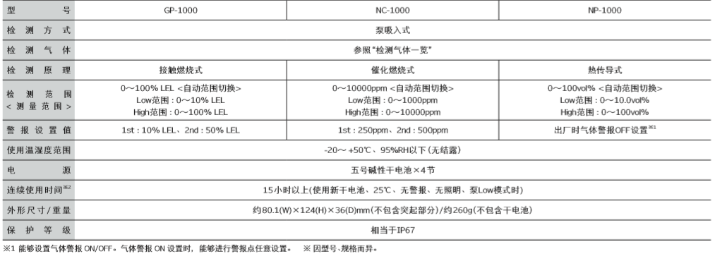 日本RIKEN(理研) NC-1000高靈敏度可燃?xì)怏w檢測儀產(chǎn)品技術(shù)參數(shù):