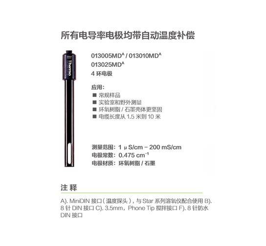 美國ORION奧立龍 013005MD常規(guī)水四環(huán)電導(dǎo)率電極產(chǎn)品技術(shù)參數(shù):