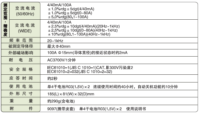 日本共立 MODEL2432高靈敏型泄漏電流鉗形表 相關參數: