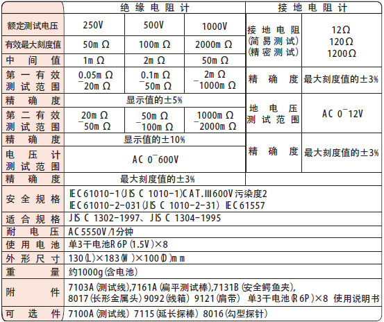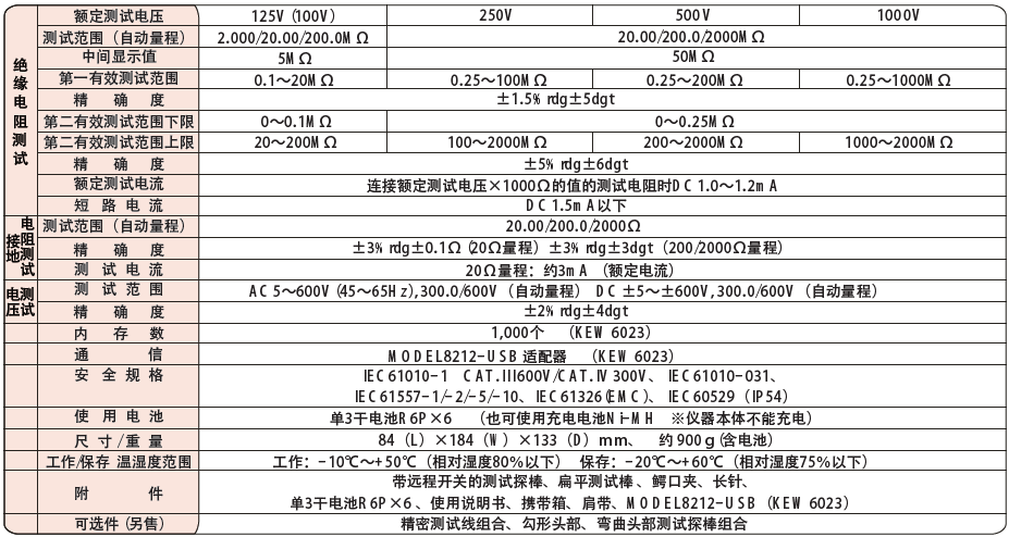 | 測試電壓 | 50-100-250-500-1000 V | |