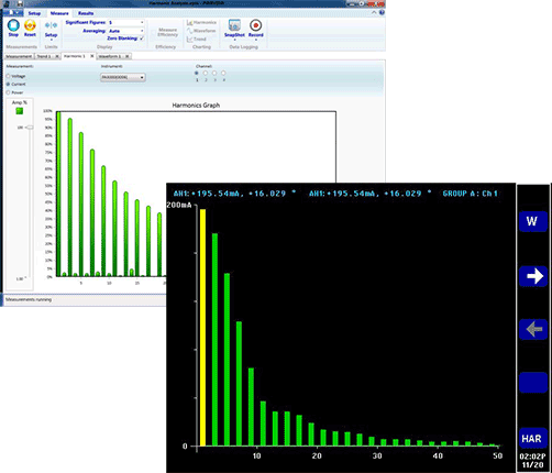 PA3000 不將信號限制于低帶寬。 它會捕獲完整圖像,以顯示高頻諧波對電壓和電流測量值的影響,使其從同類其他功率計(jì)中脫穎而出。 可為高達(dá) 100 kHz 的基本頻率分析諧波內(nèi)容,并在必要時提供帶寬濾波器。