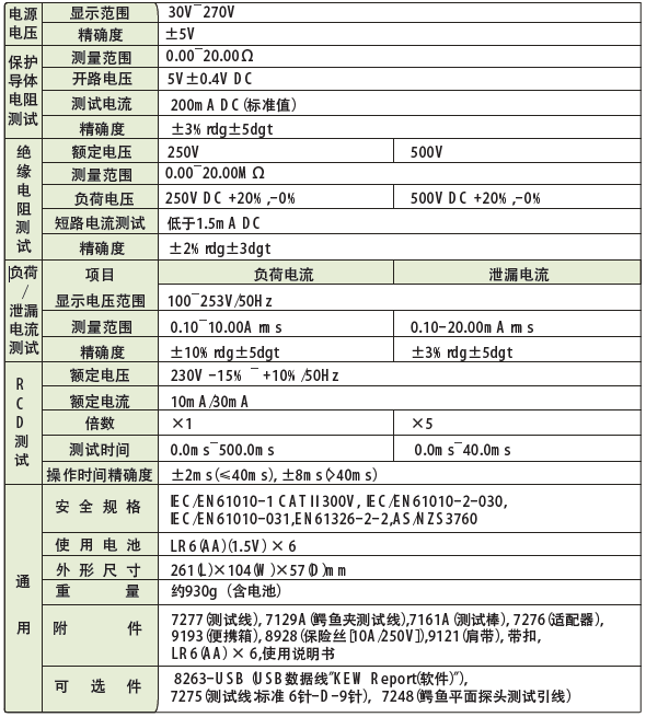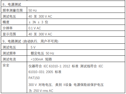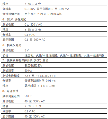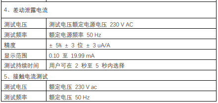 | 接地連接測試 (Rpe) | 顯示范圍 | 0至19.99 Ω |