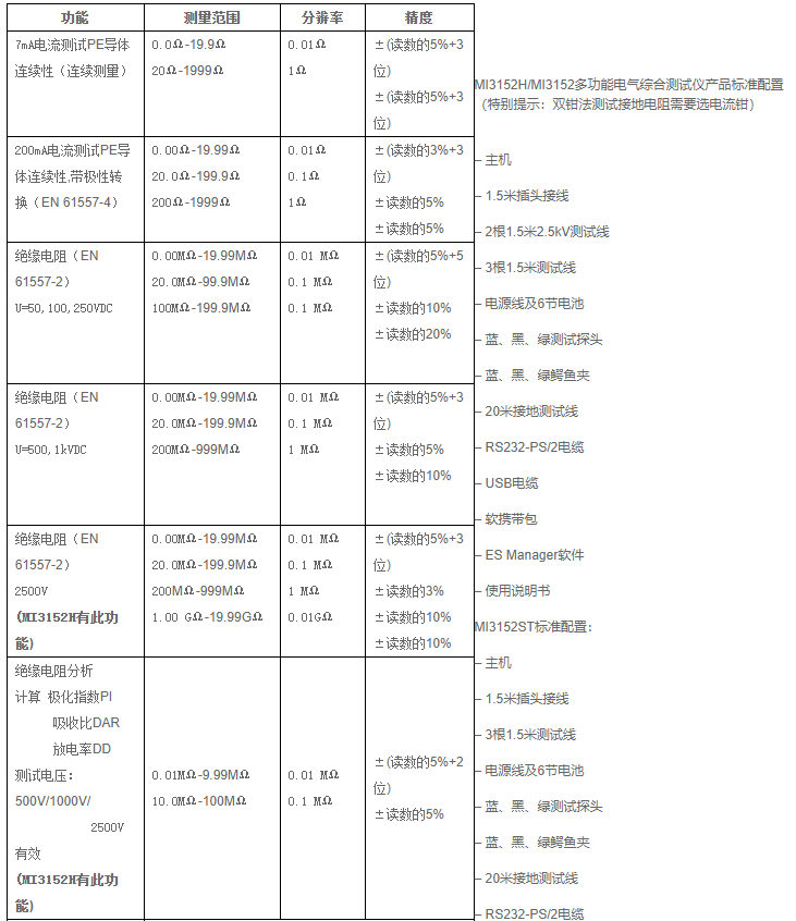 德國METREL美翠MI3152H/MI3152安規(guī)測試儀 產(chǎn)品參數(shù):