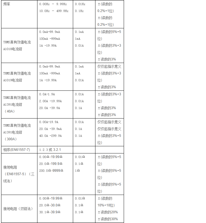 | 準(zhǔn)確度(接地測試調(diào)零之后) | ±(5% + 4 個字) | |