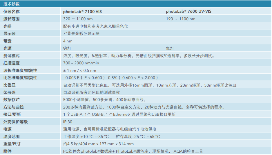 賽萊默Xylem分光光度計(jì)photoLab? 7000 系列產(chǎn)品技術(shù)參數(shù):