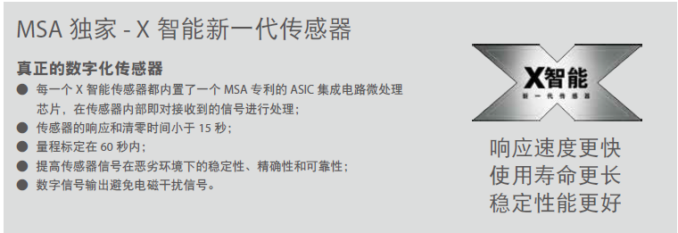 ● 采用MSA *家研制的X 智能傳感器,響應速度更快,使用壽命更長,穩(wěn)定性能更好;