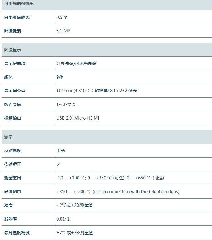 德國德圖 testo 882 精密型中級紅外熱像儀 技術參數: