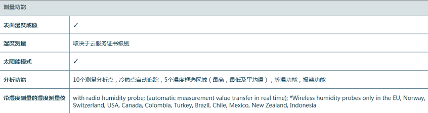 專業檢測的測量功能:10個測量點,5個區域測溫(含最大值/最小值),等溫線,以及聲音報警
