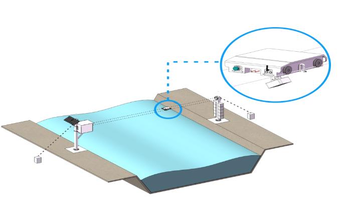 DX-LLX-1 雷達(電波)流速儀可以配和 DX-WLX-1 雷達水位計等水位計和DX-RTU-1遙測 終 端 機 使 用 組 成 流 量 監 測 系統,對于寬斷面測流也可采用多個雷達流速儀組成多垂線流量監測系統。