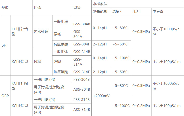 | 帶脈沖噴氣清洗的投入式檢測器 | PHCG-95D | PVC,SUS304/316 | 適用于2m及以上深度的環(huán)境;僅限用于KCl非補(bǔ)給型 |