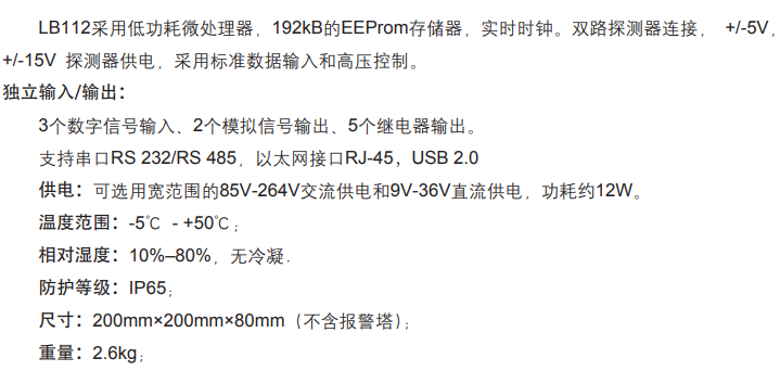 LB112為支持單/雙路獨(dú)立探測器或高/低劑量率同時(shí)測量的監(jiān)測系統(tǒng),軟鍵控制菜單、界面友好易操作。供電可選用85V-264V交流供電和9V-36V直流供電,多達(dá)4000個(gè)數(shù)據(jù)存儲(chǔ)點(diǎn)可通過兩個(gè)接口傳輸至外界PC,內(nèi)置RS485串口,支持RJ-45以太網(wǎng)接口和USB接口。