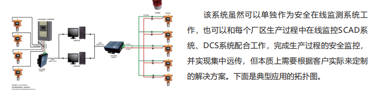 該系統(tǒng)特點既可以單獨作為安全在線監(jiān)測系統(tǒng)工作,也可以和每個廠區(qū)生產(chǎn)過程中在線監(jiān)控SCAD系統(tǒng)、DCS系統(tǒng)配合工作,完成生產(chǎn)過程的安全監(jiān)控,并實現(xiàn)集中遠(yuǎn)傳。每個燃?xì)夤径己卸鄠€場站,我公司的燃?xì)夤芫W(wǎng)安全管理慧平臺H100就能夠?qū)崿F(xiàn)把每個場站統(tǒng)一管理起來,因此它既可以作為是中小燃?xì)夤镜恼{(diào)度中心使用,也可以作為大型燃?xì)夤菊{(diào)度中心的內(nèi)容補充。