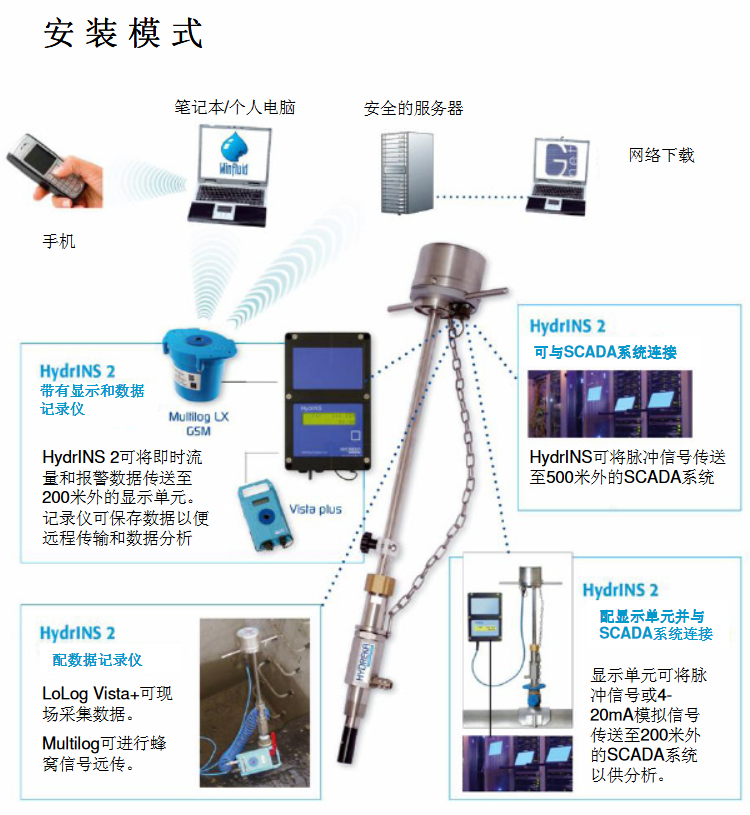 1. 流量計主機與數據傳輸高度集成,為一體化設備,面積速度傳感器通過軍工接口與HWM*先J的Intelligens and COMLogTM IS 數據記錄儀連接,高度封裝;