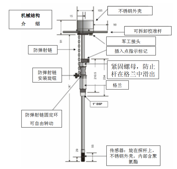 6.?液位傳感器標準采用壓力傳感器,含通氣干燥管,可選超聲波液位計,標準測量范圍為3.5m(其他量程可選),精度±1%;