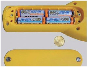 使用硬幣就可容易打開電池盒,儀器由四個可充電鎳氫電池(AA 型)進行供電