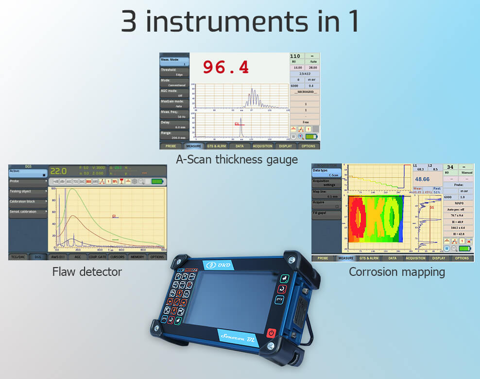 Sonocon BL是一款數字UT測試儀,其3個設備合為一體: