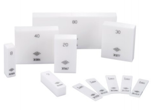 陶瓷量塊,又名陶瓷塊規、陶瓷量規。由超硬材 料氧化錯(ZrCh)制造,橫截面為矩形,具有一對 相互平行的測量面,測量面可以與另一個量塊 的測量面或與類似量塊測量面的物體,通過分 子力的作用而相互粘合使用,是一種高精度的 長度檢測工具。