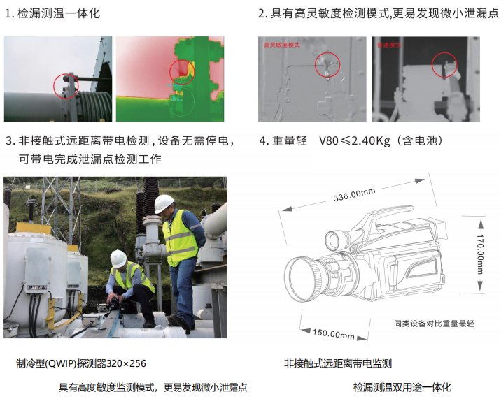 V80 SF6 氣體紅外熱成像檢漏儀 產品特點: