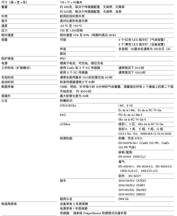 德國DRAGER(德爾格) X-am3500 多氣體檢測儀 產品參數: